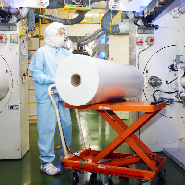 インフレーション製膜設備を13台保有し、国内生産№1。これにより、安定供給を実現しています。