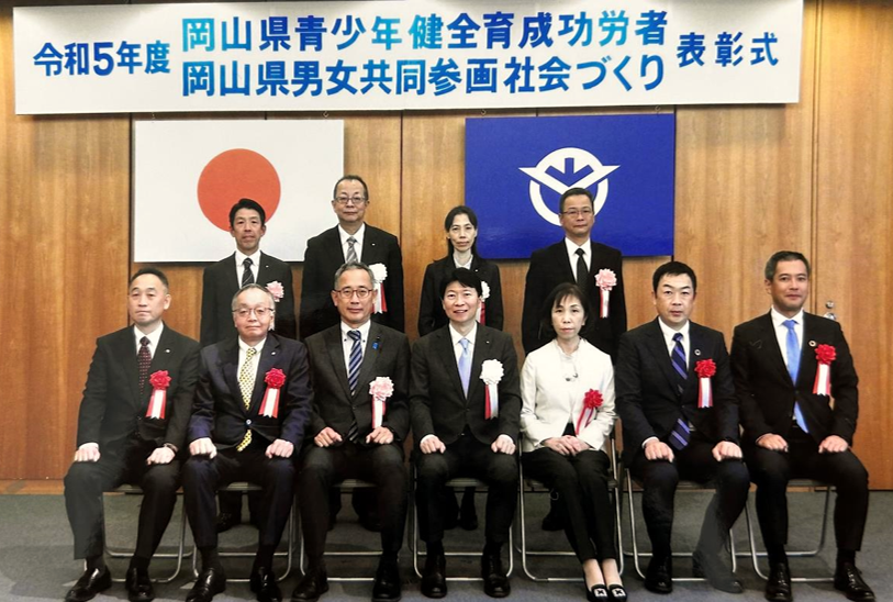 令和5年11月15日(水)、県下各地域において男女共同参画社会づくりに積極的に取り組み、その功績が顕著であると認められ、今後もその活動が期待できる事業者として、伊原木 隆太 岡山県知事から「岡山県男女共同参画社会づくり表彰」が贈呈されました。
